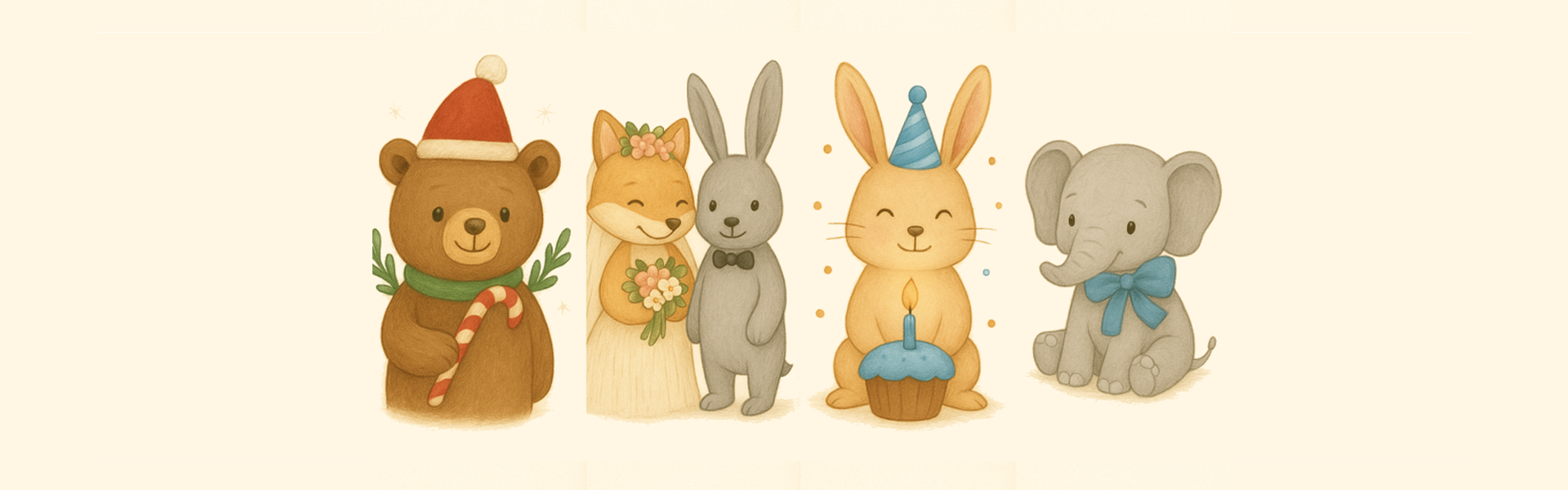 Onze Valentijnscollectie is met zorg en aandacht ontworpen. Zachte tinten, verfijnde illustraties en lieve details die het hart van dit moment weerspiegelen. Van speelse diertjes tot subtiele hartjes: elk ontwerp vertelt een klein verhaal over liefde en verbondenheid.